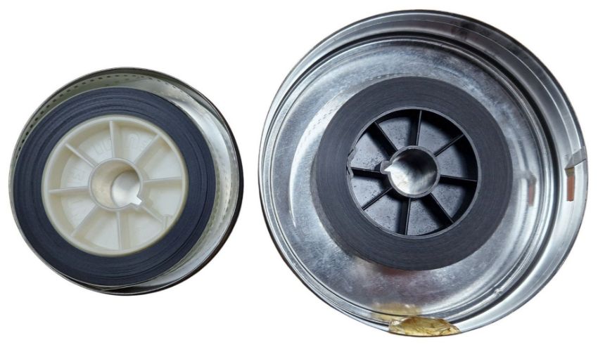 The larger cannister measures 18.3cm (7.2 inches) in diameter. The smaller cannister measures 12.5cm (5 inches) in diameter. There is wear to each of the cannisters, the condition is very good minus. The condition of the reels is near mint.