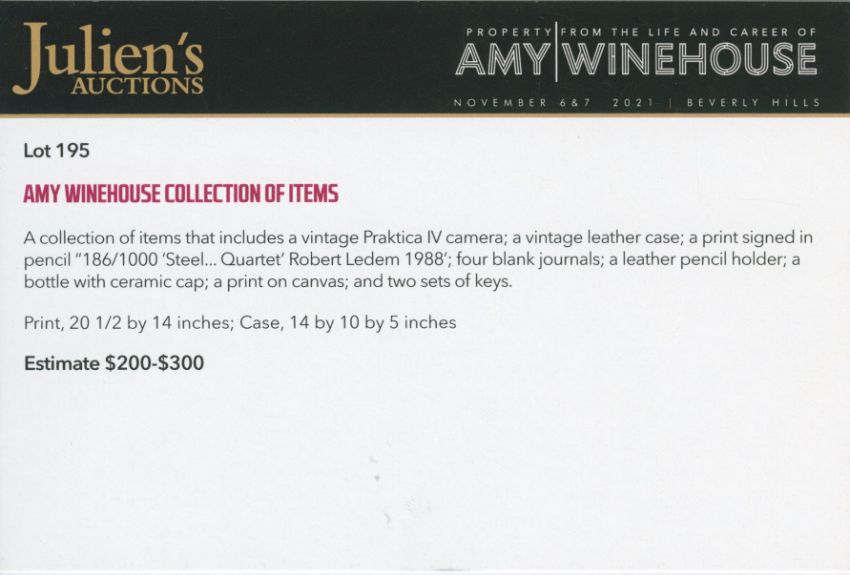 Provenance: sold as part of lot 195 in the Julien’s Auctions Amy Winehouse sale held on the 6th and 7th November 2021. A colour copy of the auction card is included.