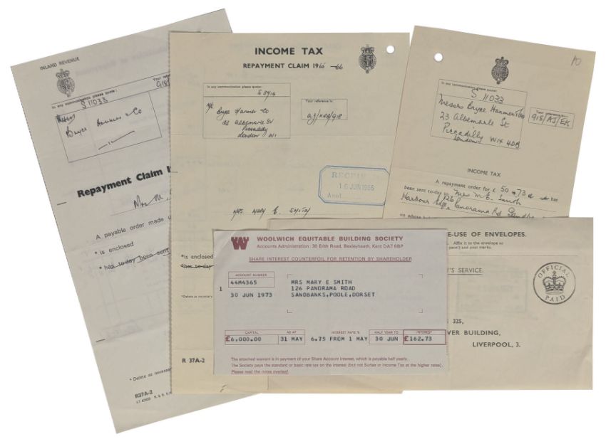 A small collection of original financial documents from the 1960s and 1970s all relating to John Lennon’s Aunt Mimi. The collection consists of the items listed below.