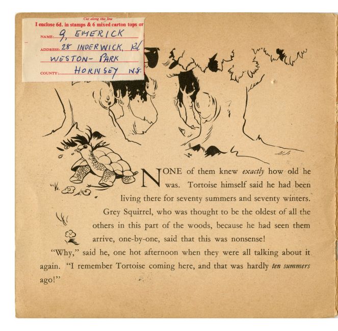 A children’s book entitled Little Grey Squirrel published by Dean & Son Ltd. The book was formerly the property of Geoff Emerick. There is a sticker on the inside front cover bearing Geoff’s name and address.