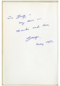 An original 1983 USA publication of the book Making Music: The Guide To Writing, Performing And Recording as edited by George Martin. The book was specially bound for Geoff Emerick and features his name in gold on the cover. It has been signed on the 2nd inside page by George Martin. He has signed in blue pen and added the inscription ‘To Geoff – My ears – thanks and love’ and also added the date ‘May 1983’. The book also comes with the original mailing envelope from APRS (Association of Professional Recording Services) which is addressed to Geoff Emerick in London N8.