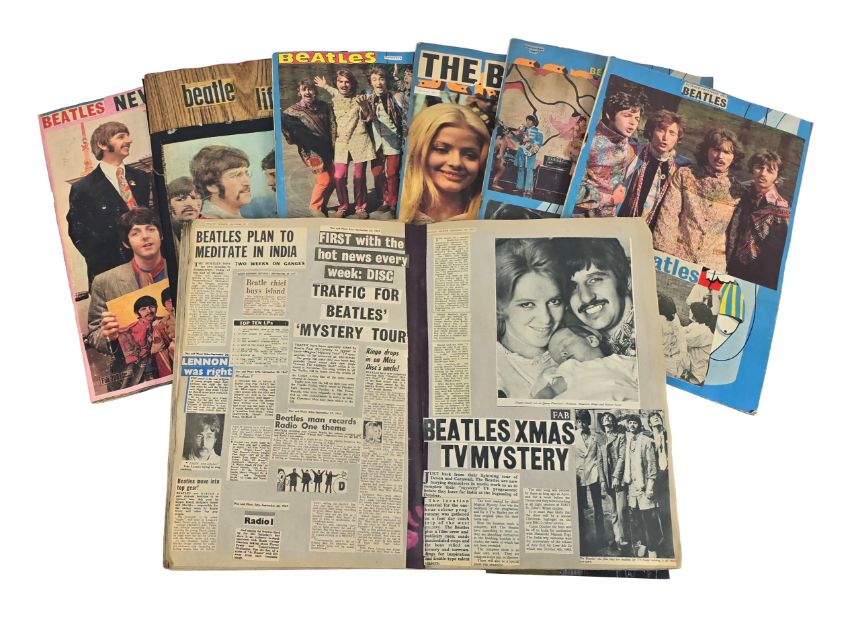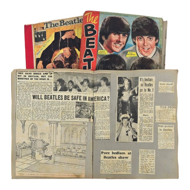 A collection of 16 scrapbooks containing cuttings from UK music and national press relating to The Beatles during the mid to late 1960s. An excellent collection of scrapbooks covering the peak period of The Beatles creativity. The scrapbooks are unusual in that they have been compiled in chronological order and most of the cuttings still have the dates attached to them. It is also unusual to find a collection of scrapbooks that focus on the later part of the Beatles career. The details of the chronology are as follows: