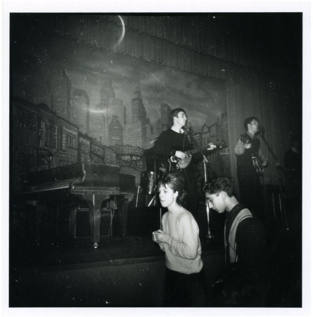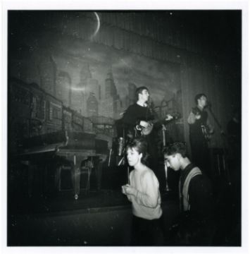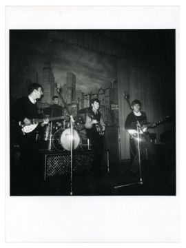 A collection of three 1990s black and white photographs of The Beatles performing onstage at The Star Club in 1962. The images were developed from the original negatives in the nineties.
