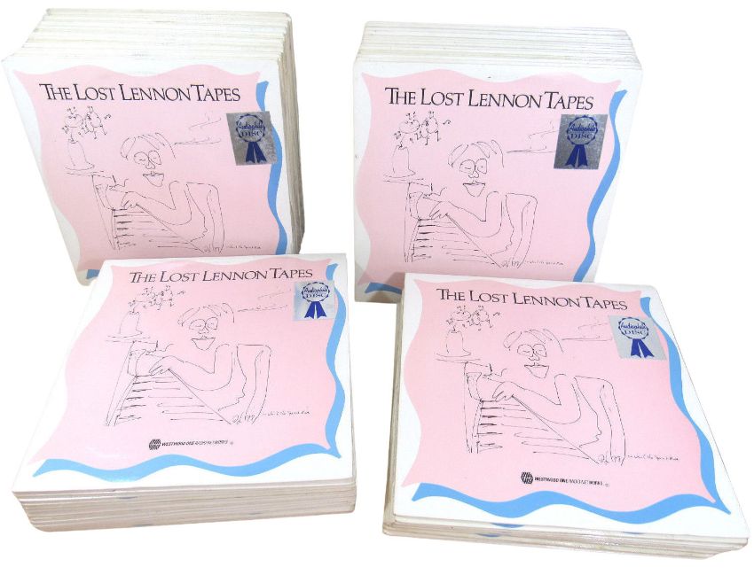 A collection of 112 vinyl records each containing an episode of the Westwood One Radio Show The Lost Lennon Tapes. Each record contains a complete show. The first disc contains the show from August 14th 1989 and the last record from the collection is from December 30th 1991. Each of the discs contains, at the time of their release, previously unreleased recordings of John Lennon interviews and music. Much of the music consists of alternate takes, many of which are early takes showing Lennon’s creative process. The Lost Lennon Tapes was an ambitious project initiated by Yoko Ono to bring these rare interviews and recordings to the public.
