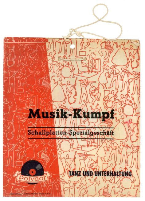 An original sixties Polydor 7 inch record paper bag bearing the words ‘Musik Kumpf Shallplatten Spezialgeschaft Tanz Und Unterhalting” (Roughly translates as Music Specialty Record Store – Dance And Entertainment).
