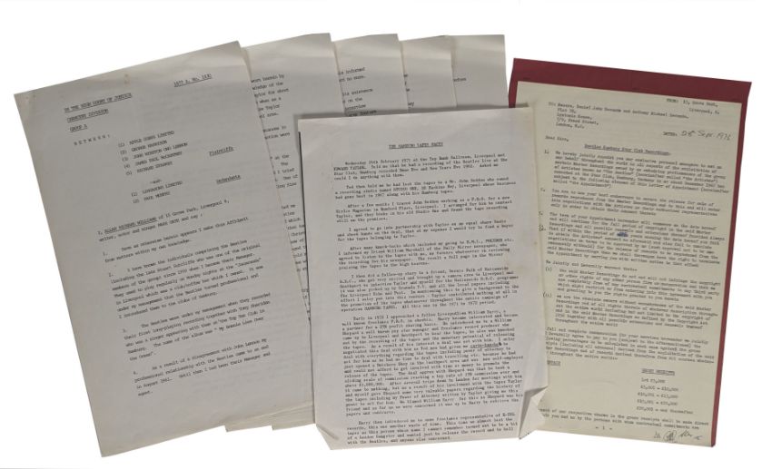 The statement also comes with an Allan Williams period photocopy of an affidavit from the High Court Of Justice from the case between Apple Corps and Lingasong Limited and a signed management contract between Allan Williams Edward Taylor Daniel Secunda and Anthony Secunda.