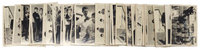 Provenance: these cards were obtained from a confectioner’s shop in the 1960s. At the tail end of Beatlemania, the shop owner found that he had several sealed display boxes of the cards on stock and fearful of the fact that the chewing gum might react with the cards he took all the small packets of cards out of the box and then opened the wrappers, threw away the chewing gum, the wrappers and the display boxes (!) and then compiled all the bubble gum cards into sets. We have purchased several sets of the cards from the family of the owner.